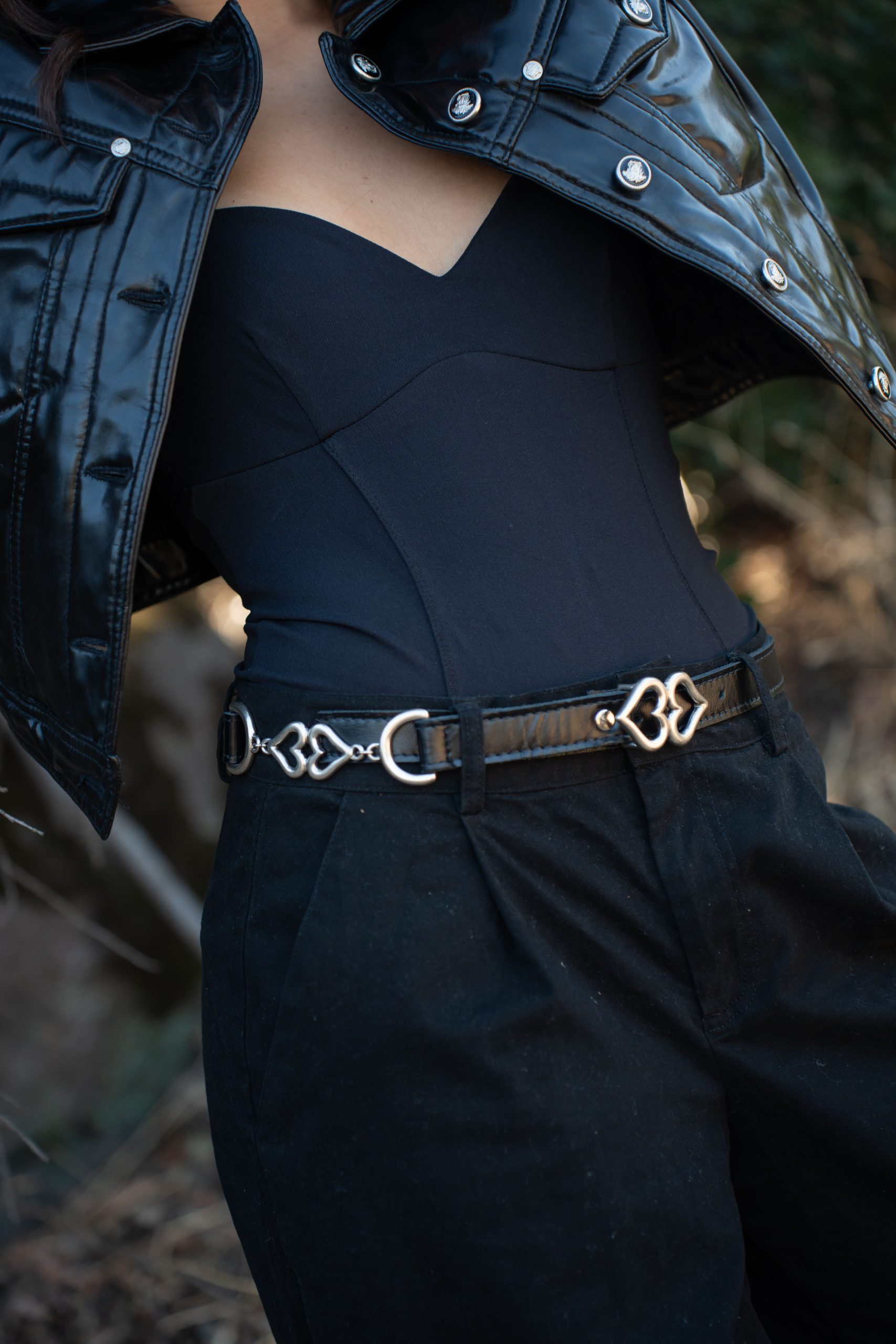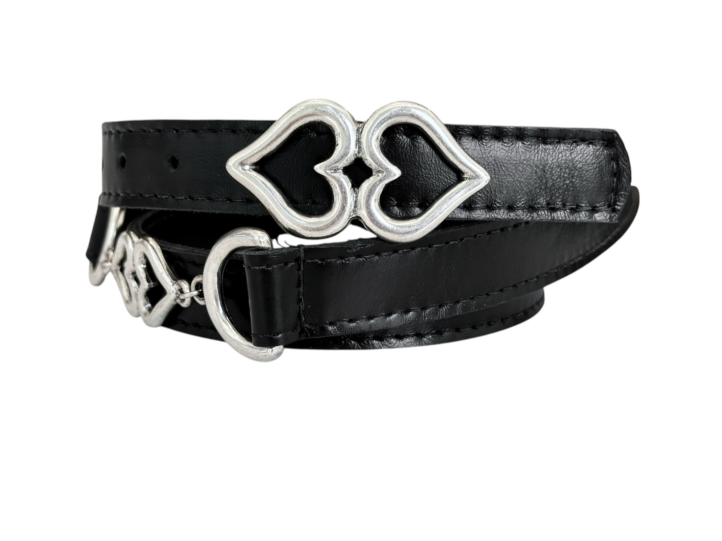 Cinturón Corazon cadena, cuero negro